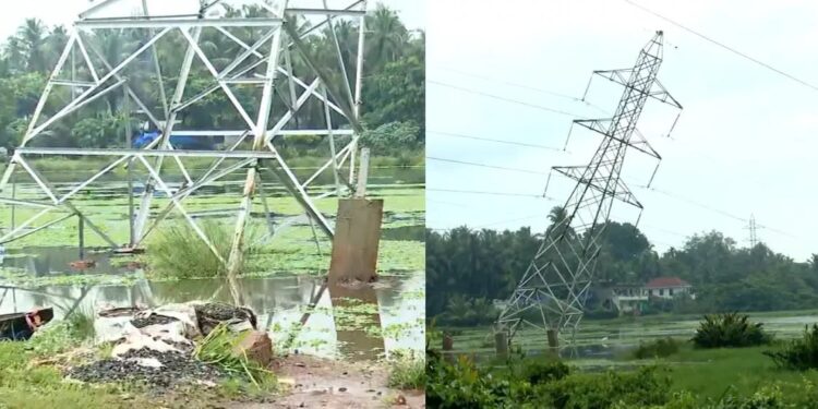 നല്ലളത്ത് 110 കെ വി ലൈൻ ടവര്‍ ചെരിഞ്ഞു; ഒഴിവായത് വൻദുരന്തം