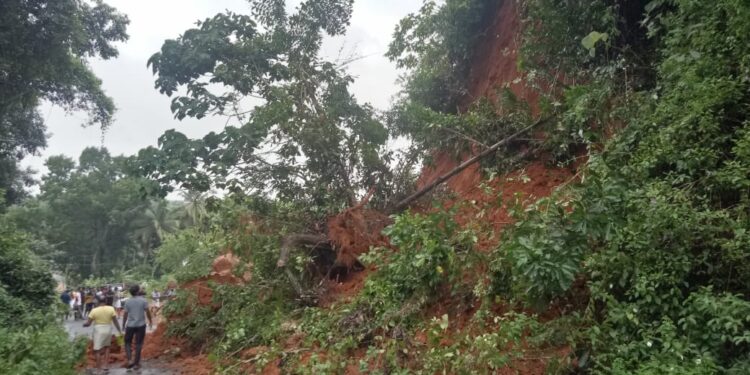കട്ടാങ്ങൽ: നവീകരണ പ്രവൃത്തി നടക്കുന്ന കളൻതോട് കൂളിമാട് റോഡിൽ നായർകുഴി കരിയാത്തൻ കുന്നിൽ മണ്ണിടിഞ്ഞ് വീണ് ഗതാഗതം പൂർണ്ണമായും തടസപ്പെട്ടു. ഇന്ന് പെയ്ത കനത്ത മഴയെതുടർന്നാണ് വൈകുന്നേരം അഞ്ച് മണിയോടെ നാലാൾ പൊക്കത്തിലുള്ള കുന്നിൽ നിന്നും മണ്ണിടിഞ്ഞു വീണത്. മഴ തുടർന്നാൽ കൂടുതൽ ഭാഗം ഇടിയാൻ സാധ്യതയുണ്ട്. മാത്രവുമല്ല കുന്നിന് മുകളിലുള്ള മരങ്ങൾ ഏത് നിമിഷവും നിലം പൊത്താമെന്ന അവസ്ഥയിലാണ്.