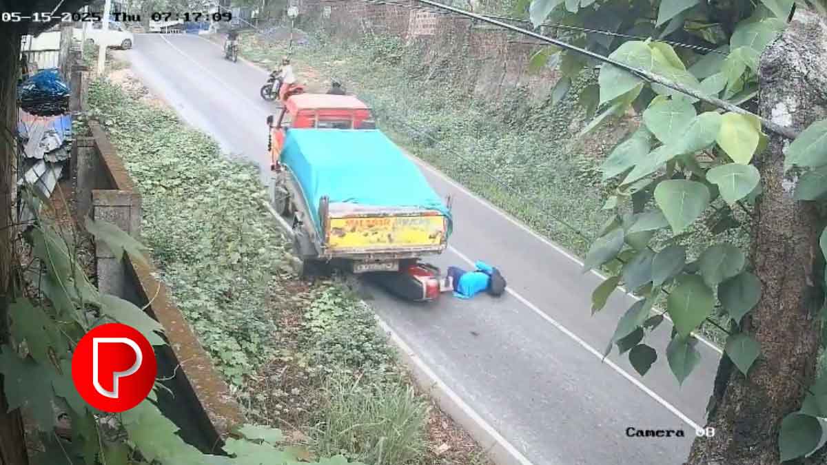 പിന്നിലേക്ക് വന്ന ലോറി സ്കൂട്ടറില്‍ ഇടിച്ചതോടെ യുവതി സ്കൂട്ടറില്‍ നിന്നും റോഡിന്‍റെ വലതുഭാഗത്തേക്ക് തെറിച്ചുവീണു. റോഡരികിലെ മരത്തില്‍ ഇടിച്ചാണ് ലോറി നിന്നത്. ശബ്ദം കേട്ട് ഓടിയെത്തിയ പരിസരവാസികളാണ് പരിക്കേറ്റ യുവതിയെ ആശുപത്രിയില്‍ എത്തിച്ചത് .പരിക്ക് സാരമുള്ളതല്ല എന്നാണ് പ്രാഥമികവിവരം. ലോറിയുടെ ബ്രേക്ക് നഷ്ടപ്പെട്ടതാവാം അപകടകാരണം എന്നാണ് സൂചന. ഇടിയുടെ ആഘാതത്തില്‍ ഇരു ചക്രവാഹനത്തിനും കേട് പറ്റി. അപകടത്തിന്‍റെ സിസിടിവി ദൃശ്യങ്ങള്‍ പുറത്തുവന്നതോടെയാണ് അപകടത്തിന്‍റെ ആഘാതവും യുവതിയുടെ അത്ഭുതകരമായ രക്ഷപ്പെടലും പുറംലോകമറിഞ്ഞത്.