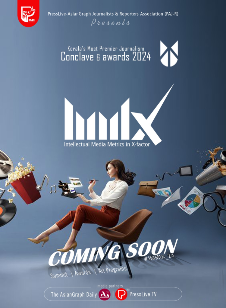 മലപ്പുറം: മാധ്യമ പ്രവർത്തകരുടെ സംഘടനയായ പ്രസ്സ്ലൈവ്-ഏഷ്യൻ ഗ്രാഫ് ജേണലിസ്റ്റ്സ് ആൻഡ് റിപ്പോർട്ടേഴ്സ് (PAJ-R) അസോസിയേഷന്റെ 2023 വർഷത്തെ മാധ്യമ അവാർഡ്, സമ്മിറ്റ്, ആർട്ട് പ്രോഗ്രാം എന്നിവ ഉൾപ്പെട്ട പരിപാടിയായ ‘IMMIX’ ന്റെ ലോഗോ, പോസ്റ്റർ എന്നിവയുടെ പ്രകാശനം കൊണ്ടോട്ടി MLA ടി വി ഇബ്രാഹിം ഇന്നലെ വാഴക്കാട് വെച്ച് നിർവഹിച്ചു.