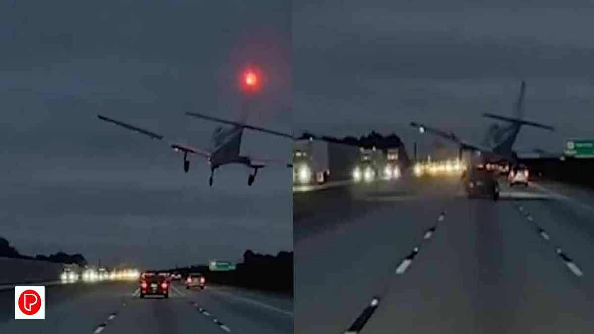 അടിയന്തരമായി ലാൻഡ് ചെയ്ത വിമാനം കാറിന് മുകളിൽ ഇടിച്ച് റോഡിലേക്ക് നിരങ്ങി നീങ്ങുന്നത് കാണാം. പൈലറ്റും ഒരു യാത്രക്കാരനുമാണ് ചെറുവിമാനത്തിലുണ്ടായിരുന്നത്. ഇരുവരും പരുക്കുകളില്ലാതെ രക്ഷപ്പെട്ടെന്ന് പൊലീസ് അറിയിച്ചു. എന്നാൽ കാർ ഓടിച്ചിരുന്ന 57കാരിയായ സ്ത്രീയ്ക്ക് അപകടത്തിൽ പരുക്കേറ്റു. ഇവരെ ആശുപത്രിയിൽ പ്രവേശിപ്പിച്ചു. പരുക്കുകൾ സാരമുള്ളതല്ല. ഹൈവേയിൽ വിമാനം തകർന്നു വീഴുന്നതിന് മുൻപ് വിമാനത്തിന്റെ എ‍ഞ്ചിന് പ്രശ്നങ്ങളുണ്ടായിരുന്നതായി പൈലറ്റ് അറിയിച്ചിരുന്നെന്ന് യുഎസ് വ്യോമയാന നിരീക്ഷണ ഏജൻസിയായ ഫെഡറൽ ഏവിയേഷൻ അഡ്മിനിസ്ട്രേഷൻ അറിയിച്ചു.കൂടുതൽ വിവരങ്ങൾ പരിശോധിക്കുകയാണെന്നും അധികൃതർ അറിയിച്ചു.